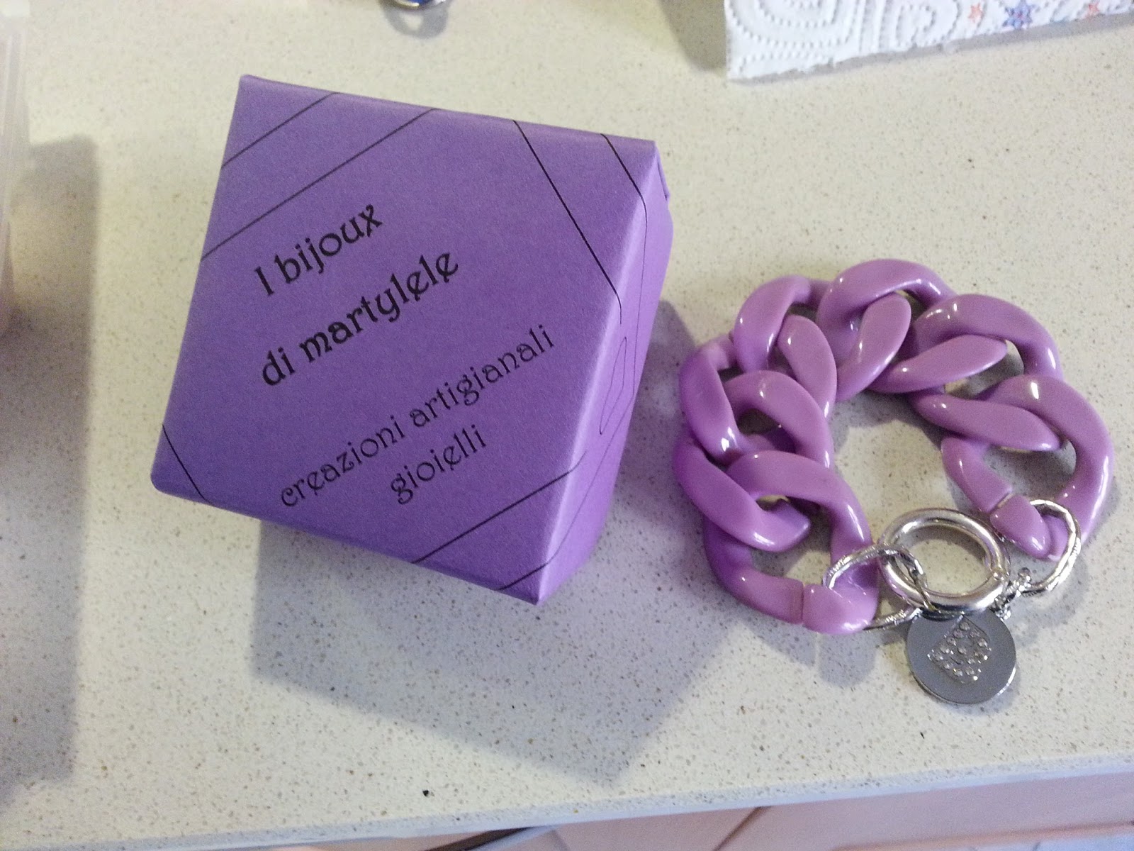 Oggi ho realizzato invece questo bracciale con la maglia in resina sulle tonalità del viola..